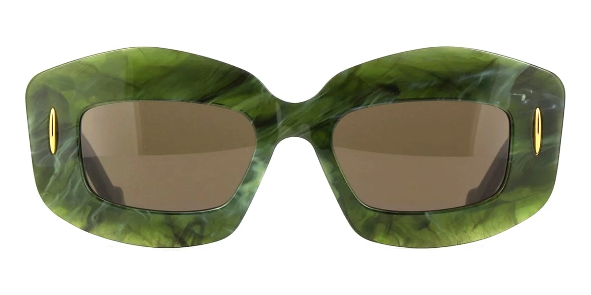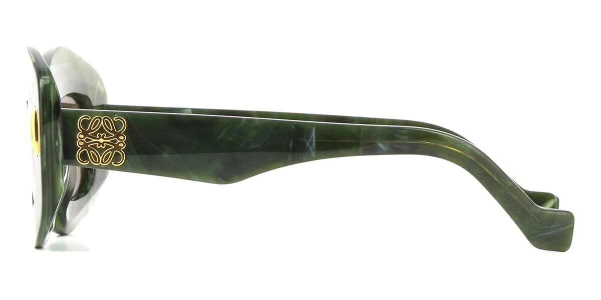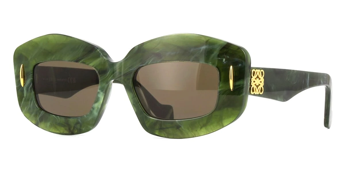 This cat eye Loewe sunglass comes in a green marble frame with light brown lenses.