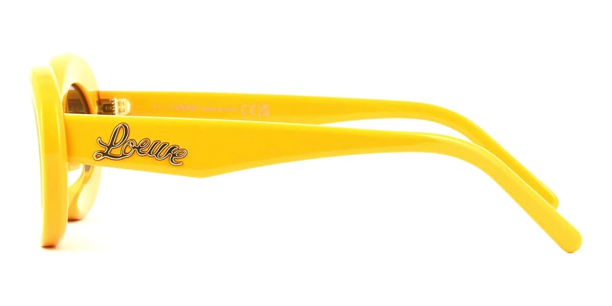 This round Loewe sunglass comes in a shiny yellow frame with organic brown lenses.