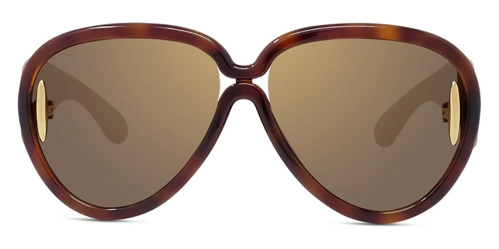 This butterfly Loewe sunglass comes in a shiny dark havana with gold frame with brown with light brown mirror lenses.