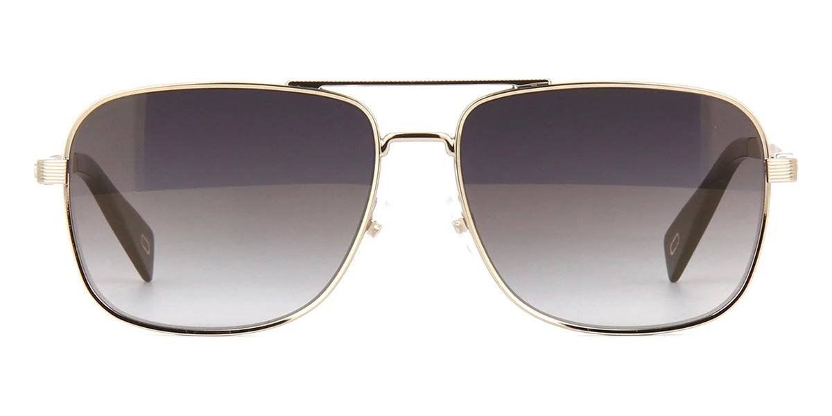 This square Marc Jacobs sunglass comes in a gold frame with grey gradient with gold flash mirror lenses.