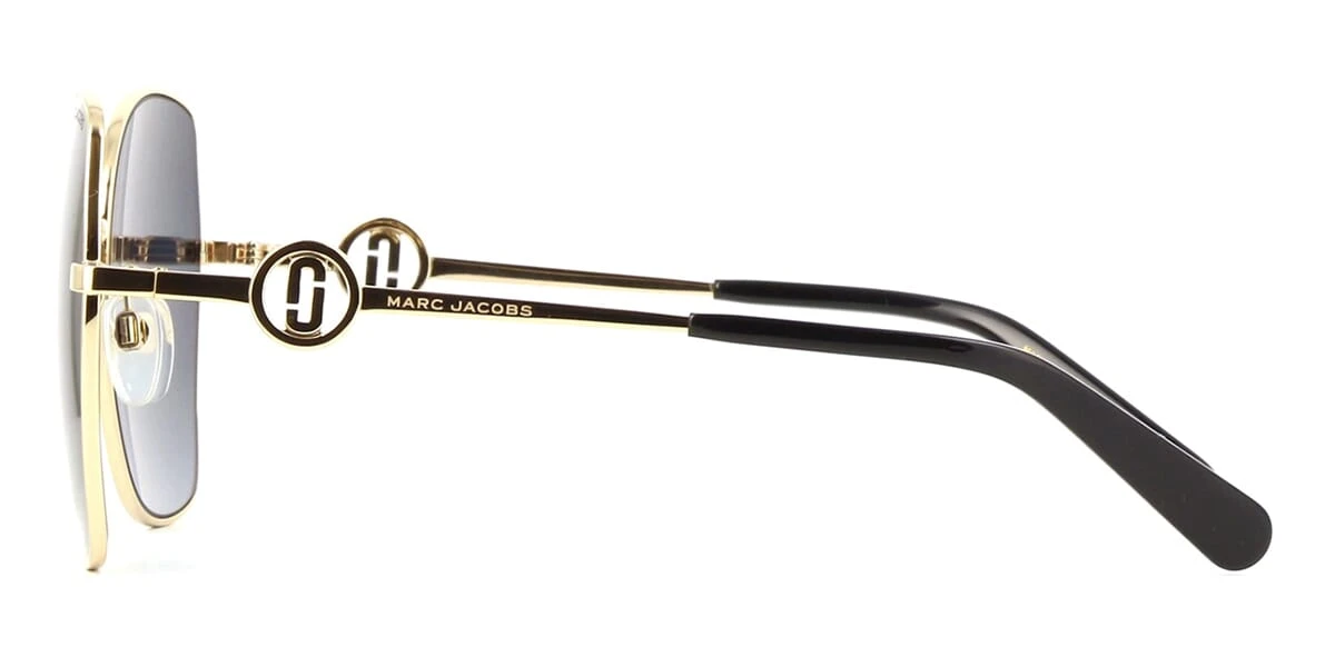 This square Marc Jacobs sunglass comes in a shiny gold frame with grey gradient with light mirror lenses.