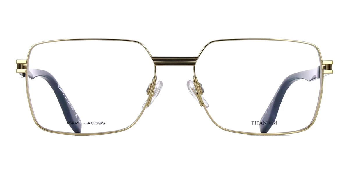 This square Marc Jacobs optical comes in a shiny gold and black frame.