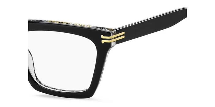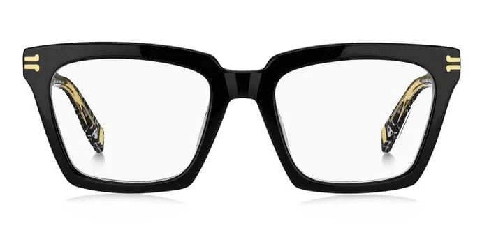 This square Marc Jacobs optical comes in a black with black and white pattern frame.
