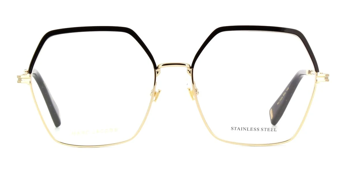 This square Marc Jacobs optical comes in a shiny gold and black frame.
