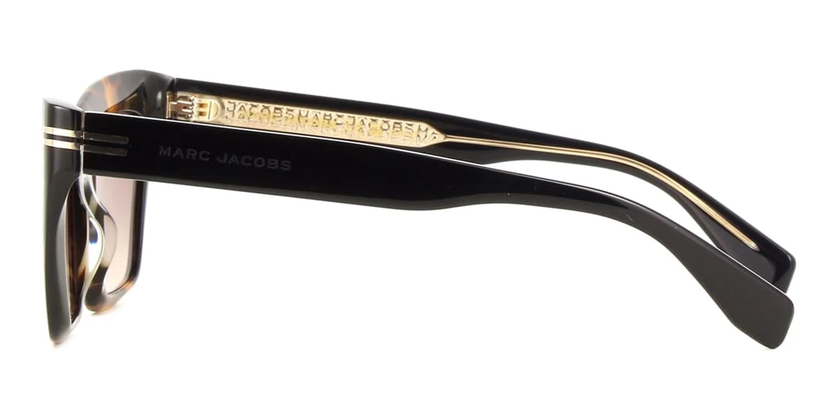 This cat eye Marc Jacobs sunglass comes in a shiny dark spotted havana frame with brown gradient lenses.