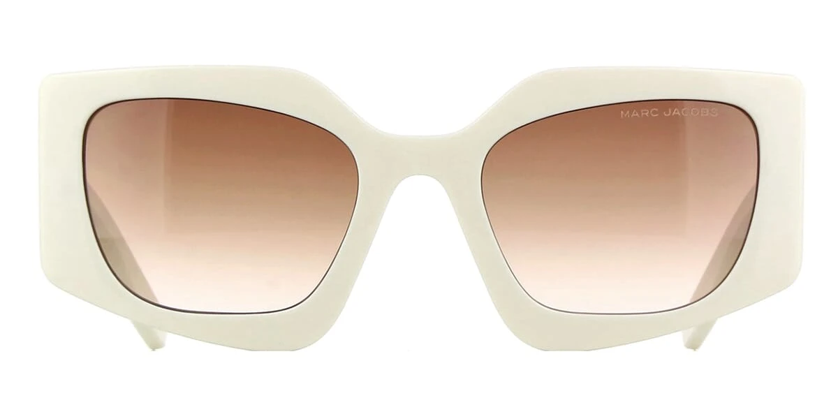 This cat eye Marc Jacobs sunglass comes in a shiny ivory frame with brown gradient lenses.