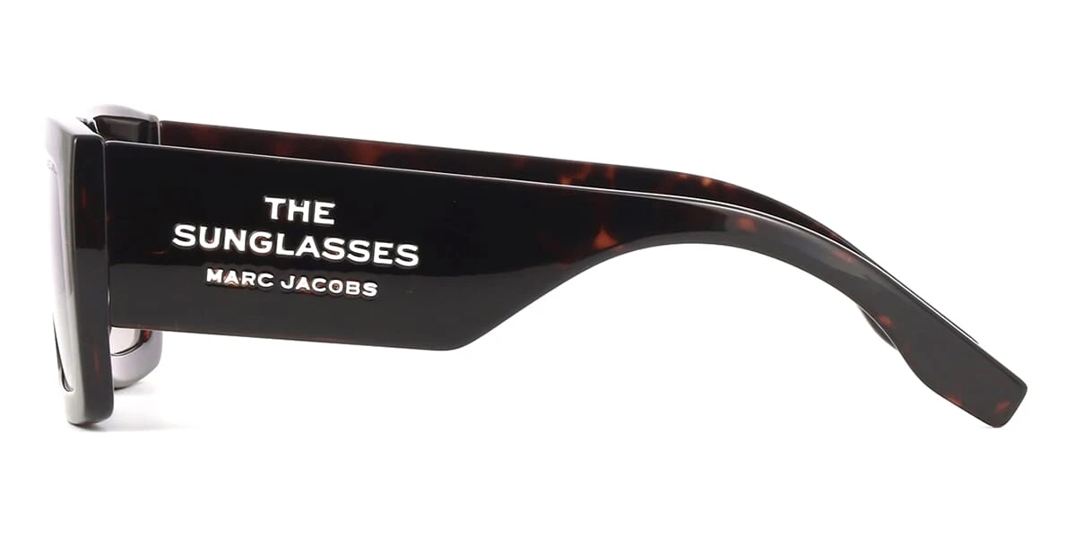 This square Marc Jacobs sunglass comes in a shiny dark havana frame with brown gradient lenses.