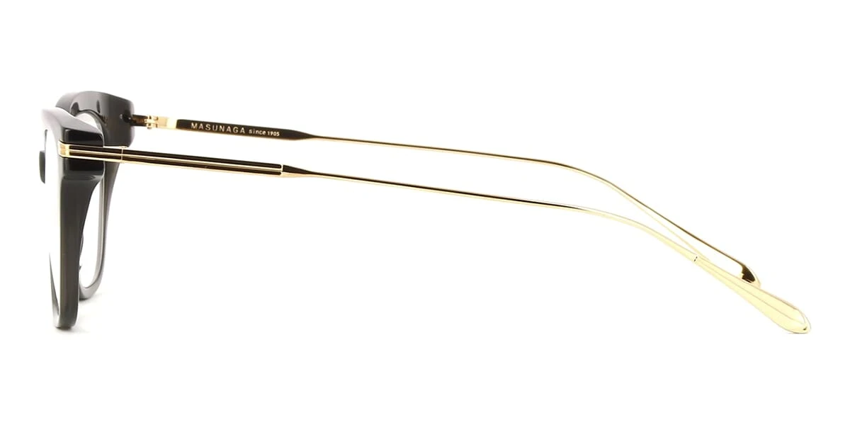 This cat eye Masunaga optical comes in a shiny black and gold frame.
