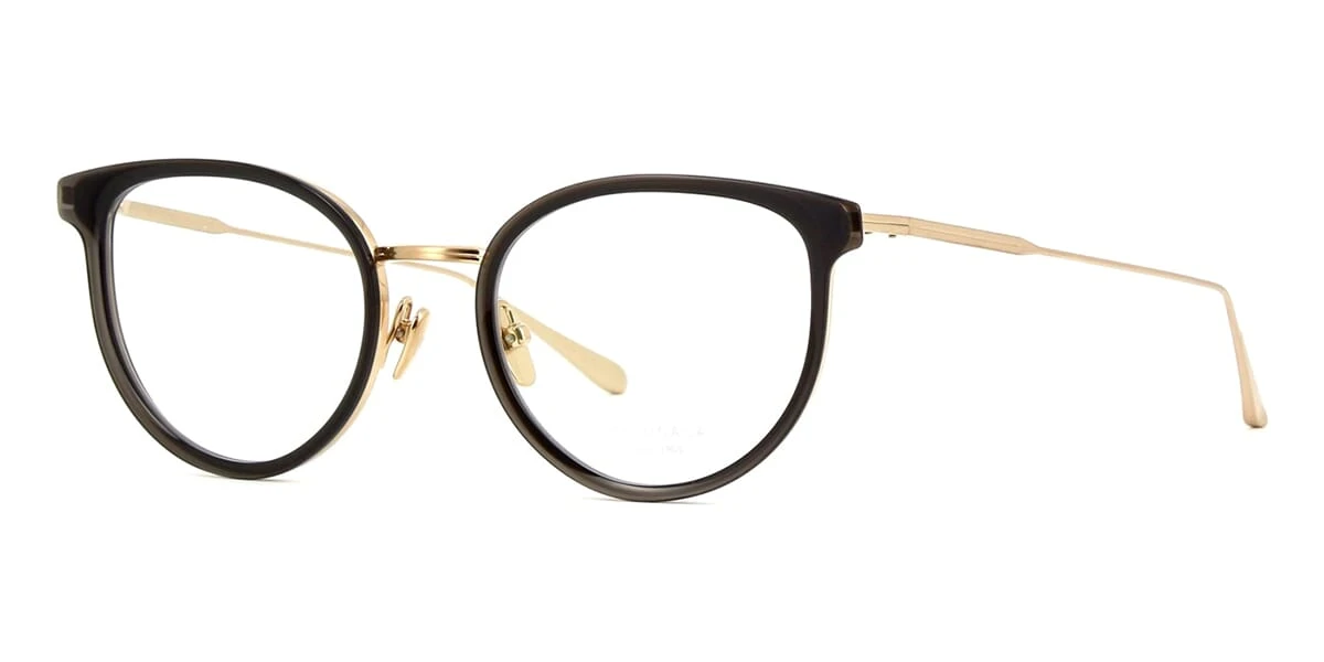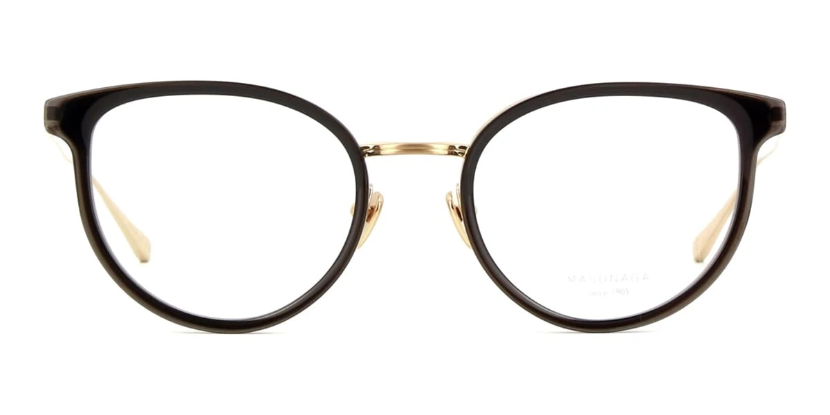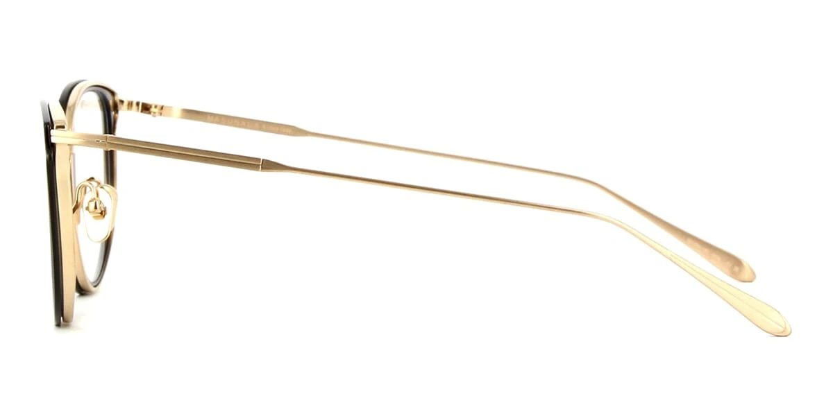 This cat eye Masunaga optical comes in a shiny black on gold plated frame.