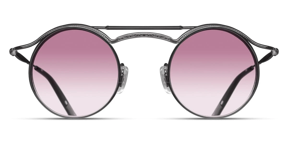 This round Matsuda sunglass comes in a ruthenium silver frame with pink gradient lenses.
