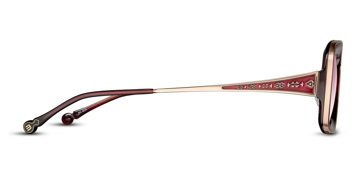This rectangular Matsuda sunglass comes in a rose gold with bordeaux frame with pink gradient lenses.