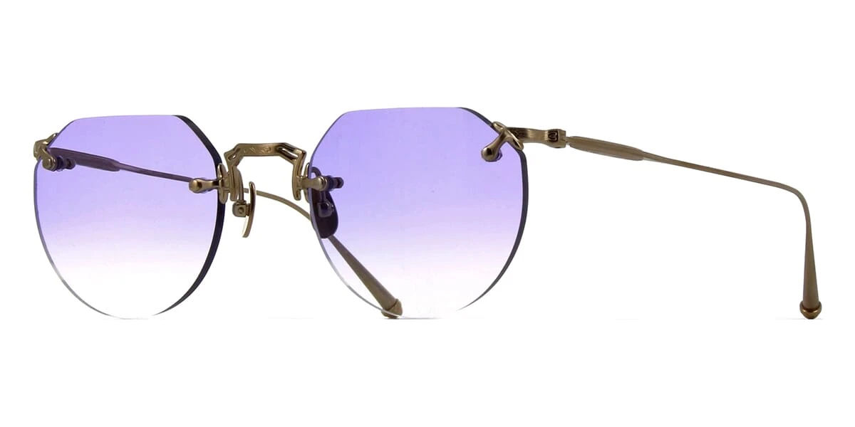 This round Matsuda sunglass comes in a brushed gold frame with violet gradient lenses.