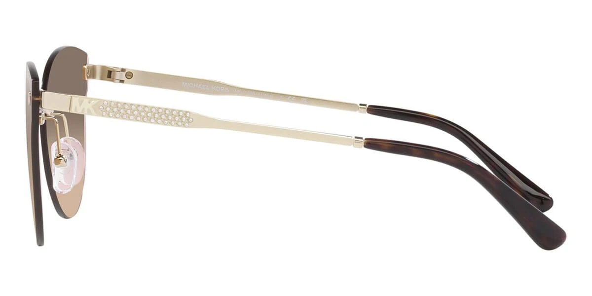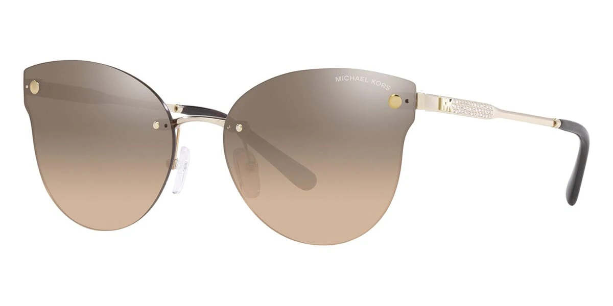 This butterfly Michael Kors sunglass comes in a light gold frame with khaki with silver gradient flash mirror lenses.