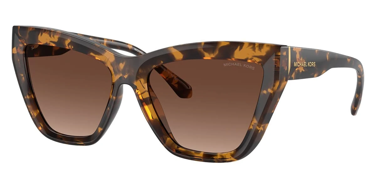 This cat eye Michael Kors sunglass comes in a dark tortoise frame with brown gradient polarised lenses.
