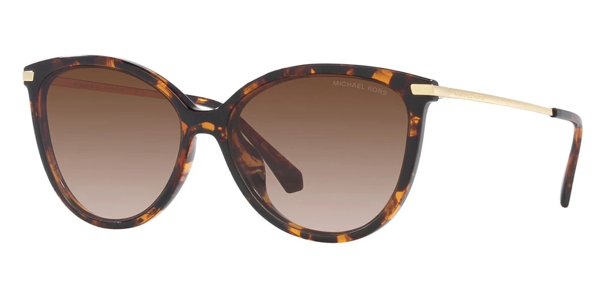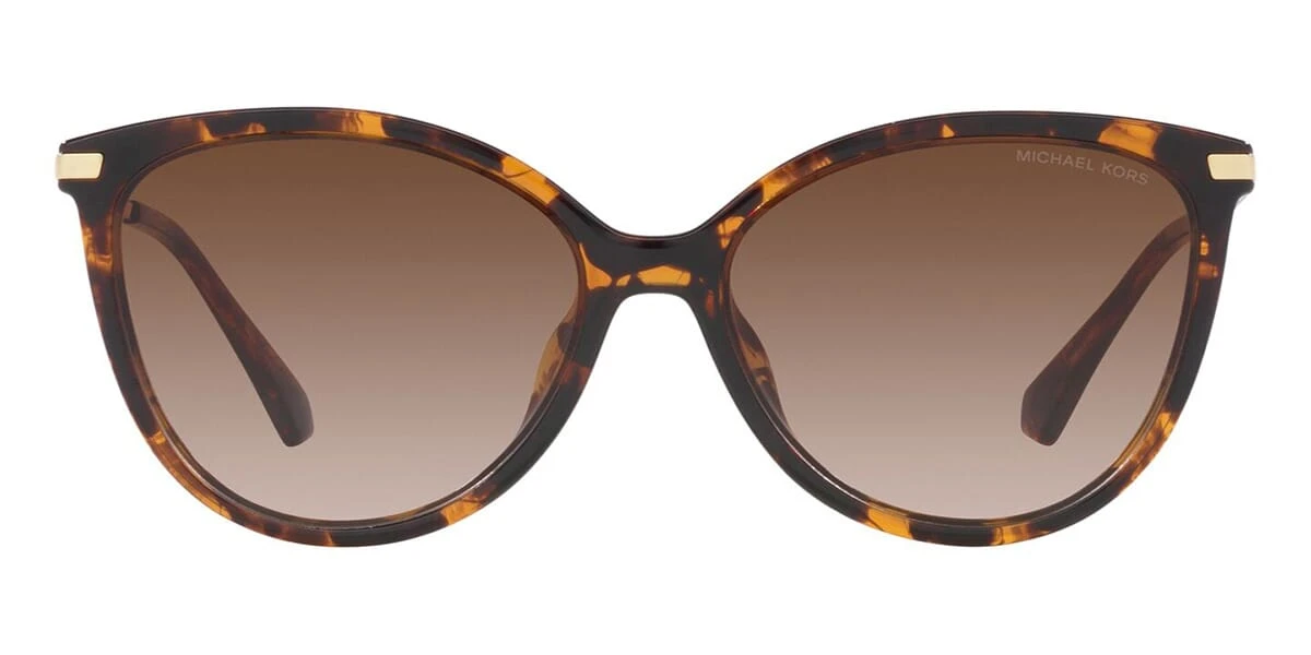 This cat eye Michael Kors sunglass comes in a dark tortoise frame with brown gradient lenses.