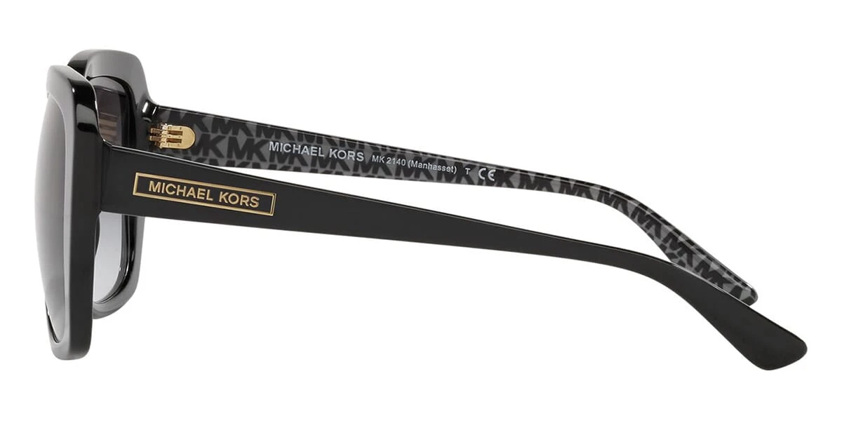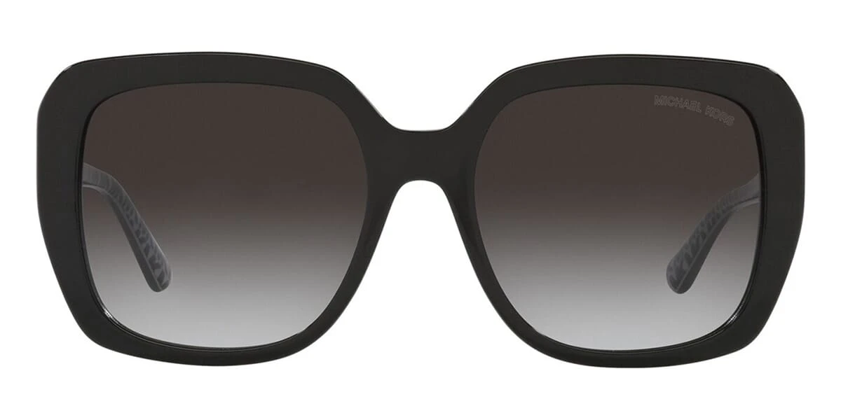 This square Michael Kors sunglass comes in a black frame with grey gradient lenses.