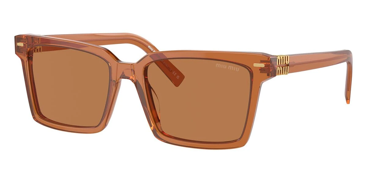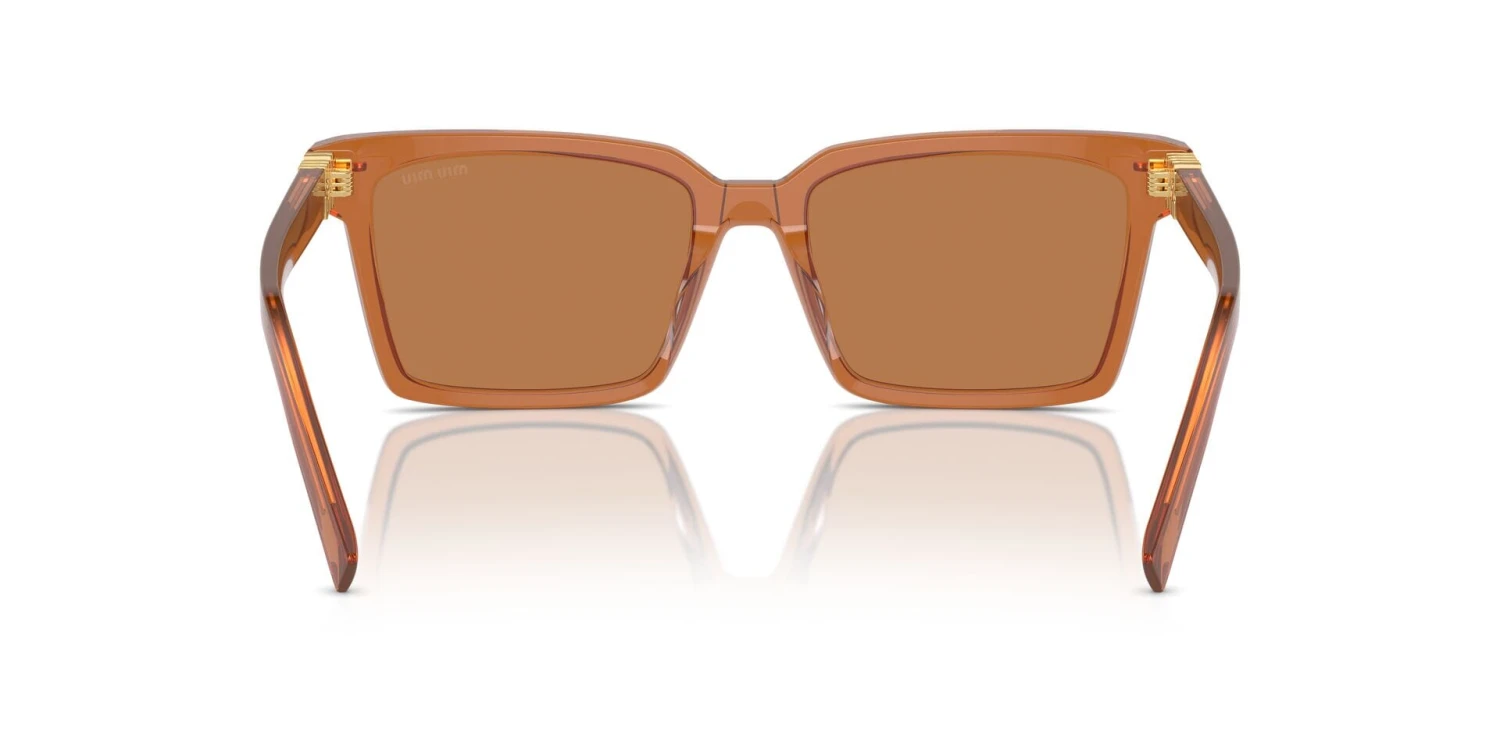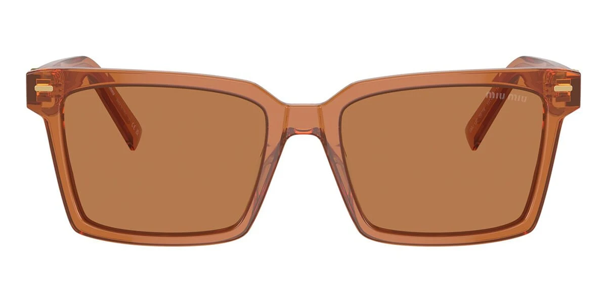 This square Miu Miu sunglass comes in a caramel crystal frame with brown lenses.