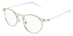 This square Mont Blanc optical comes in a crystal beige with silver frame.