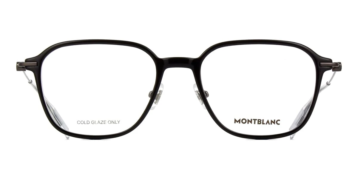 This square Mont Blanc optical comes in a shiny black and dark ruthenium frame.