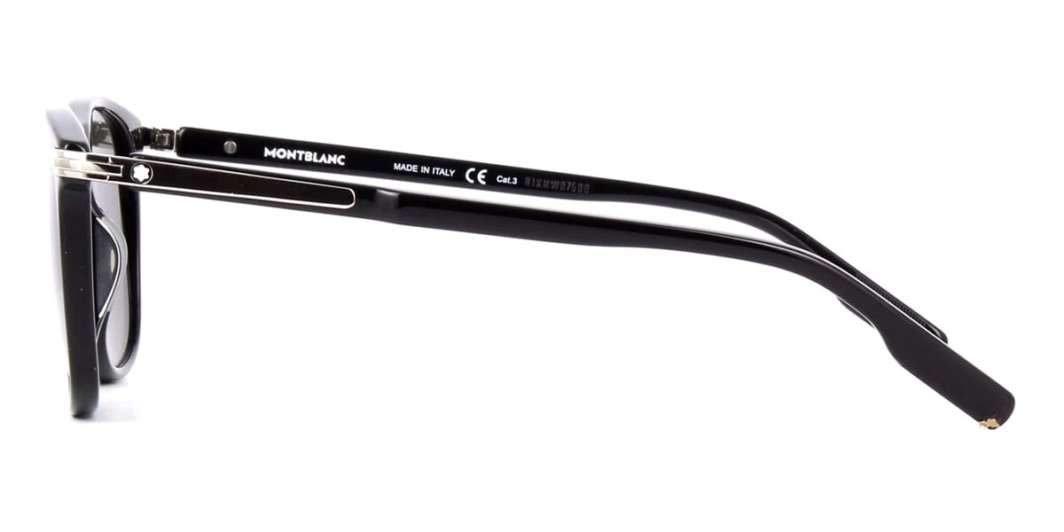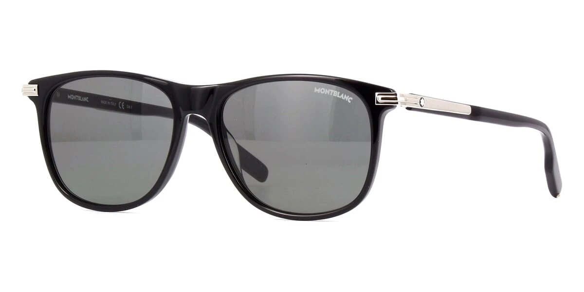 This square Mont Blanc sunglass comes in a shiny black frame with grey lenses.