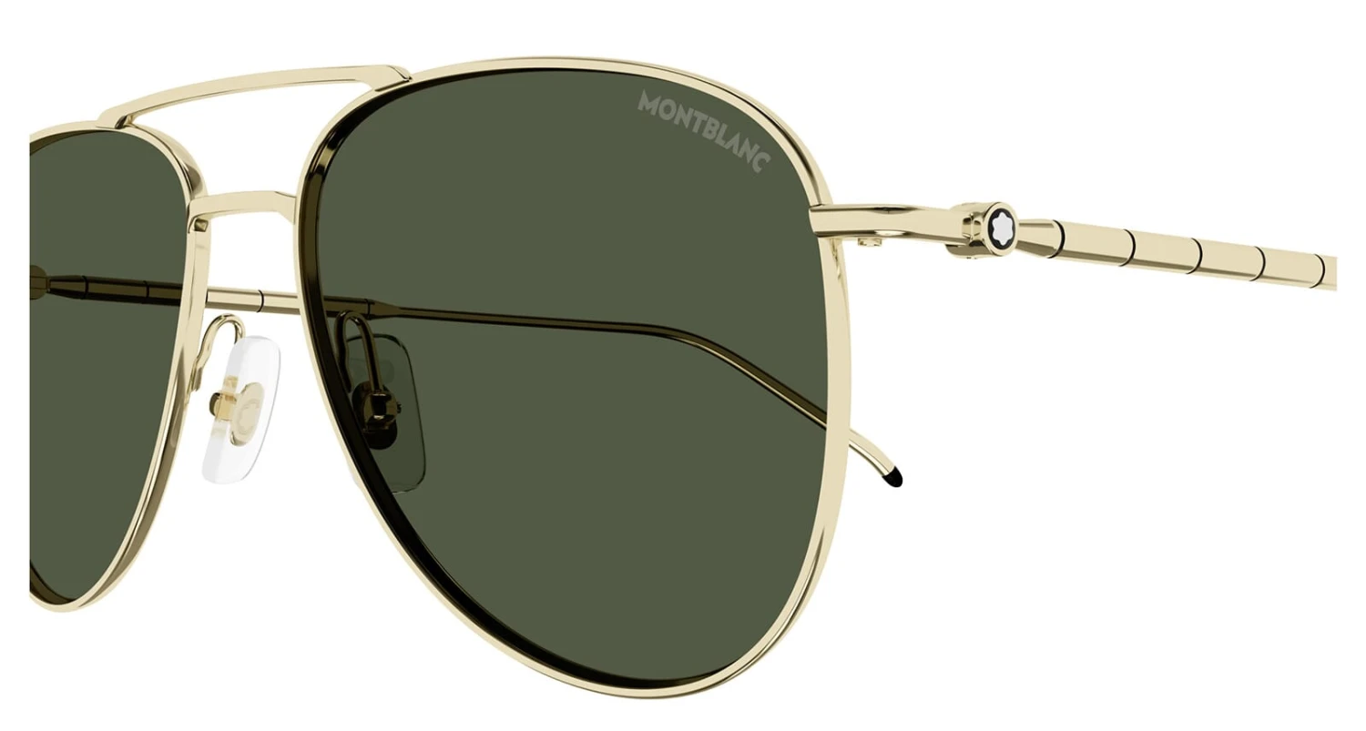 This aviator Mont Blanc sunglass comes in a gold frame with green lenses.
