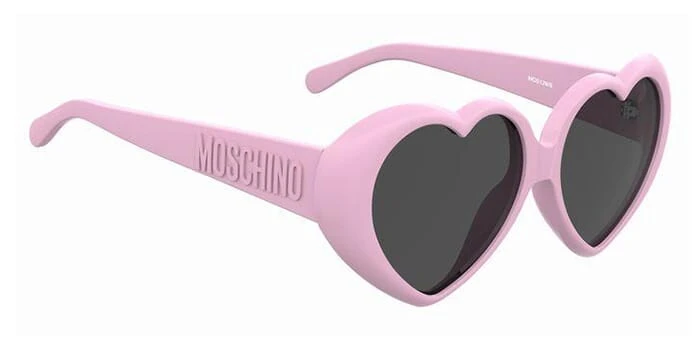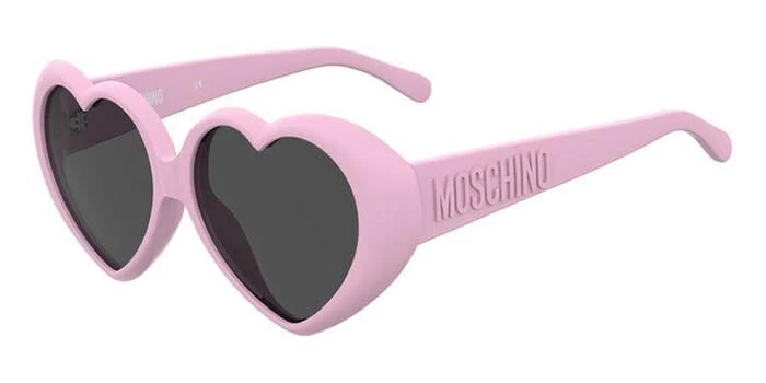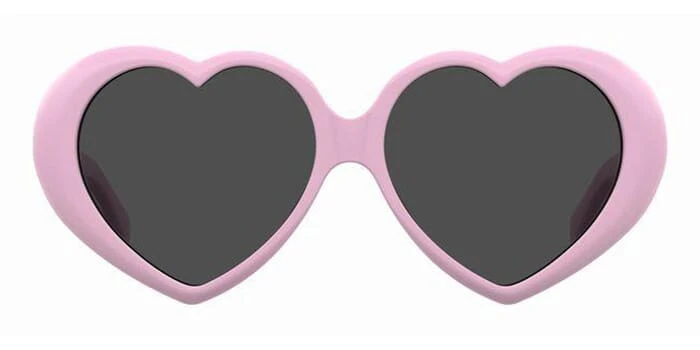 This other Moschino sunglass comes in a pink frame with grey lenses.