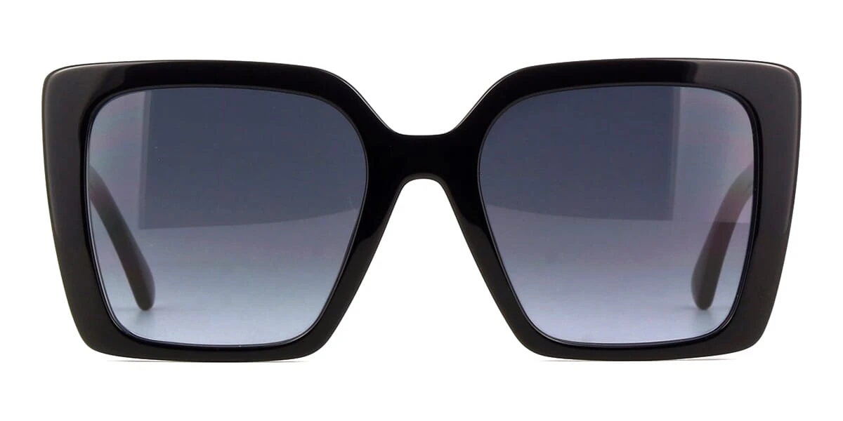 This square Moschino sunglass comes in a shiny black frame with grey gradient with light mirror lenses.