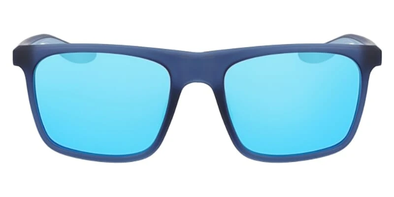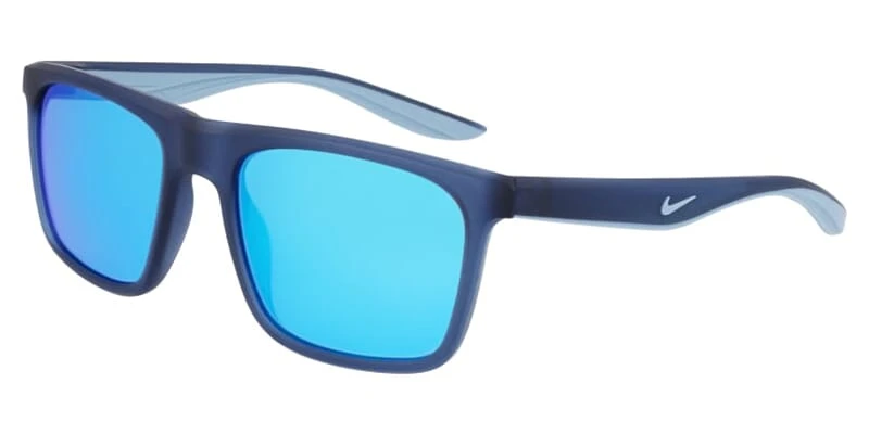 This square Nike sunglass comes in a matte mystic navy and blue mirror frame with blue mirror lenses.