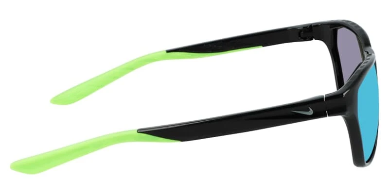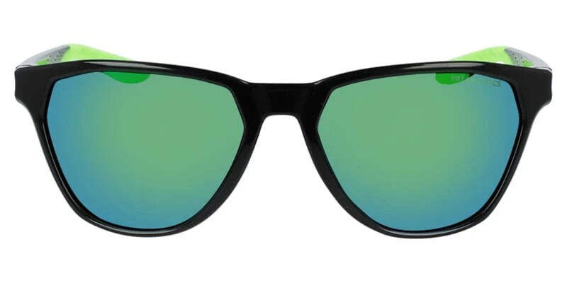 This square Nike sunglass comes in a matte black with green frame with green lenses.