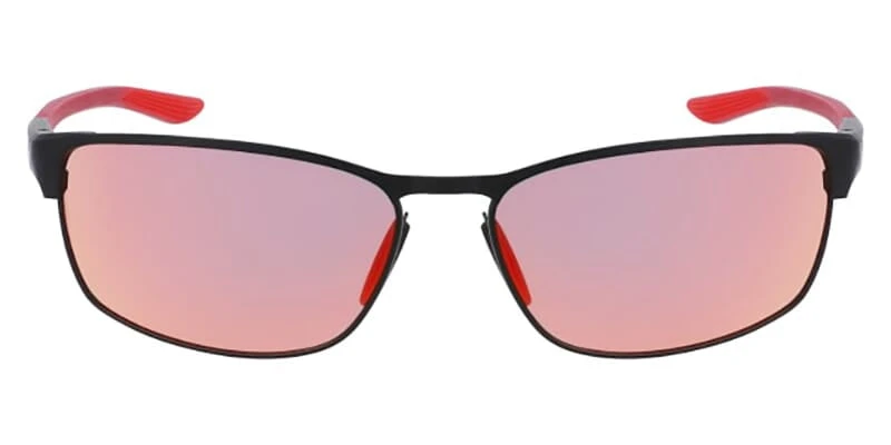 This rectangular Nike sunglass comes in a matte black frame with red with red flash mirror lenses.