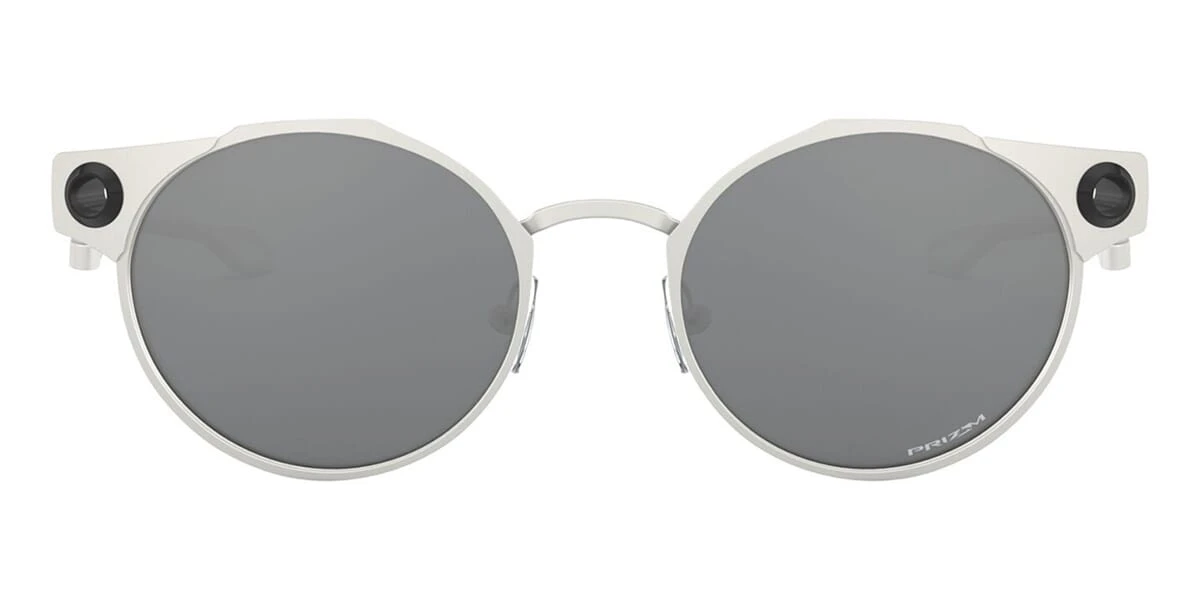 This round Oakley sunglass comes in a satin chrome frame with black prizm lenses.