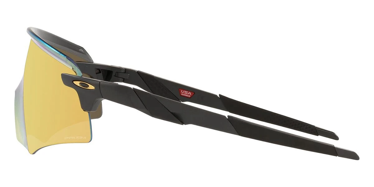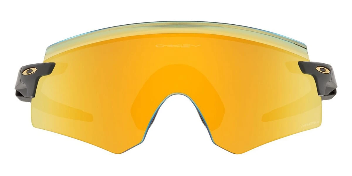 This rectangular Oakley sunglass comes in a matte carbon frame with prizm 24k lenses.