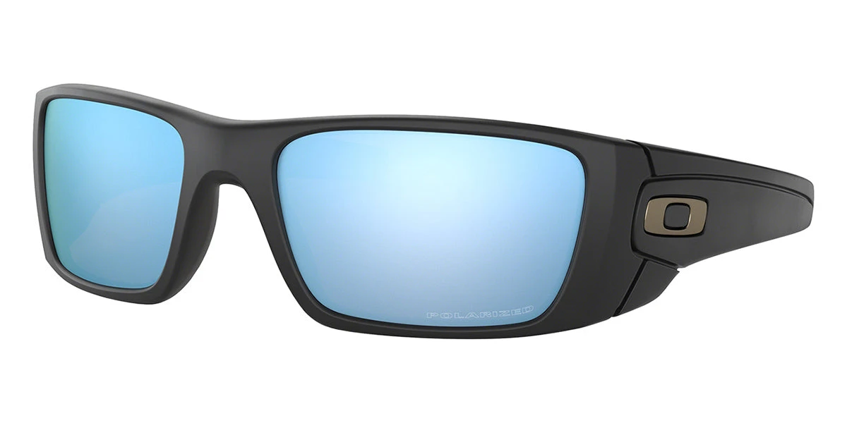 This rectangular Oakley sunglass comes in a matte black frame with prizm deep water polarised lenses.