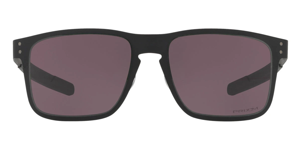 This square Oakley sunglass comes in a matte black frame with prizm grey lenses.