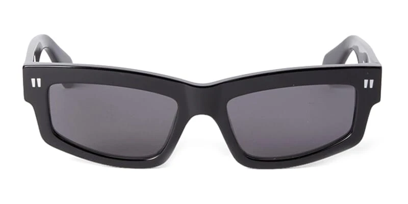 This square Off-White sunglass comes in a black frame with grey lenses.