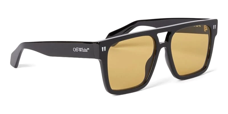 This square Off-White sunglass comes in a shiny black frame with camel brown lenses.