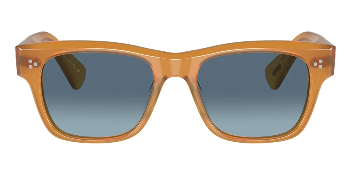 This square Oliver Peoples sunglass comes in a amber frame with marine gradient lenses.