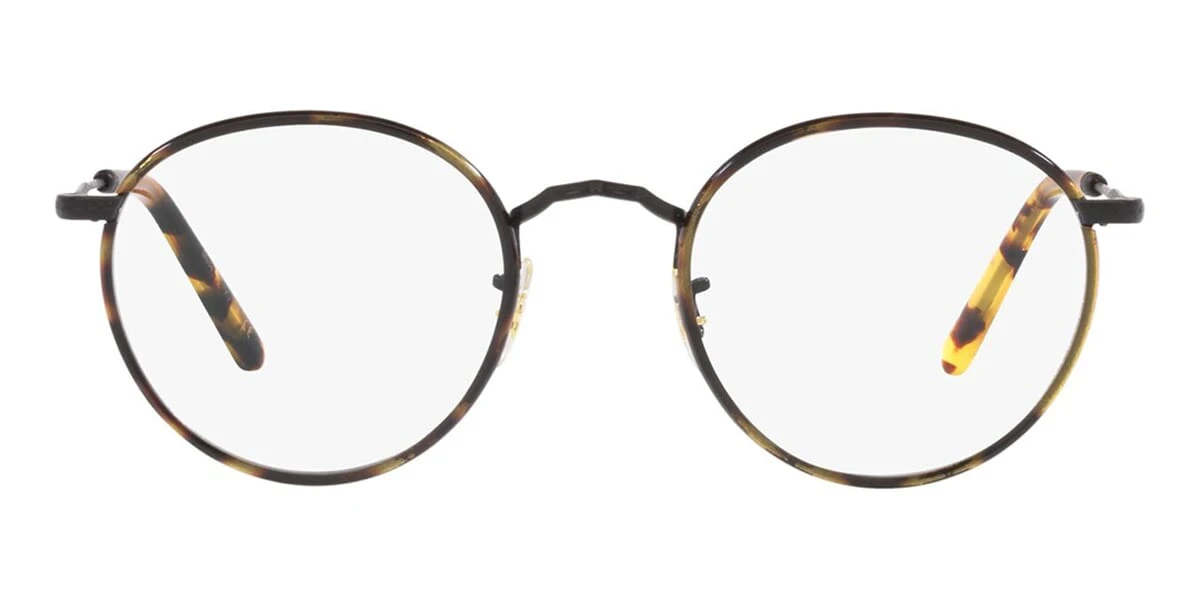 This round Oliver Peoples optical comes in a matte black with blonde havana frame.