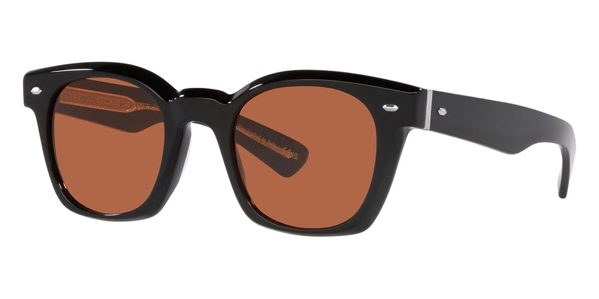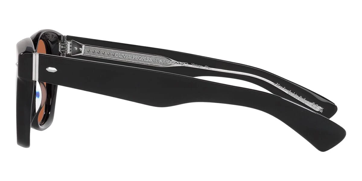 This rectangular Oliver Peoples sunglass comes in a black frame with brown lenses.