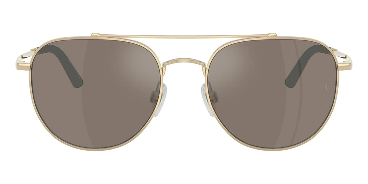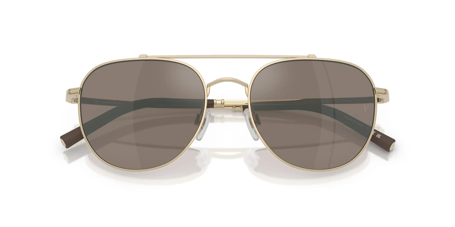 This square Oliver Peoples sunglass comes in a gold frame with sierra with light flash mirror lenses.