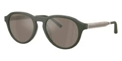 This round Oliver Peoples sunglass comes in a green smoke frame with sierra flash mirror lenses.