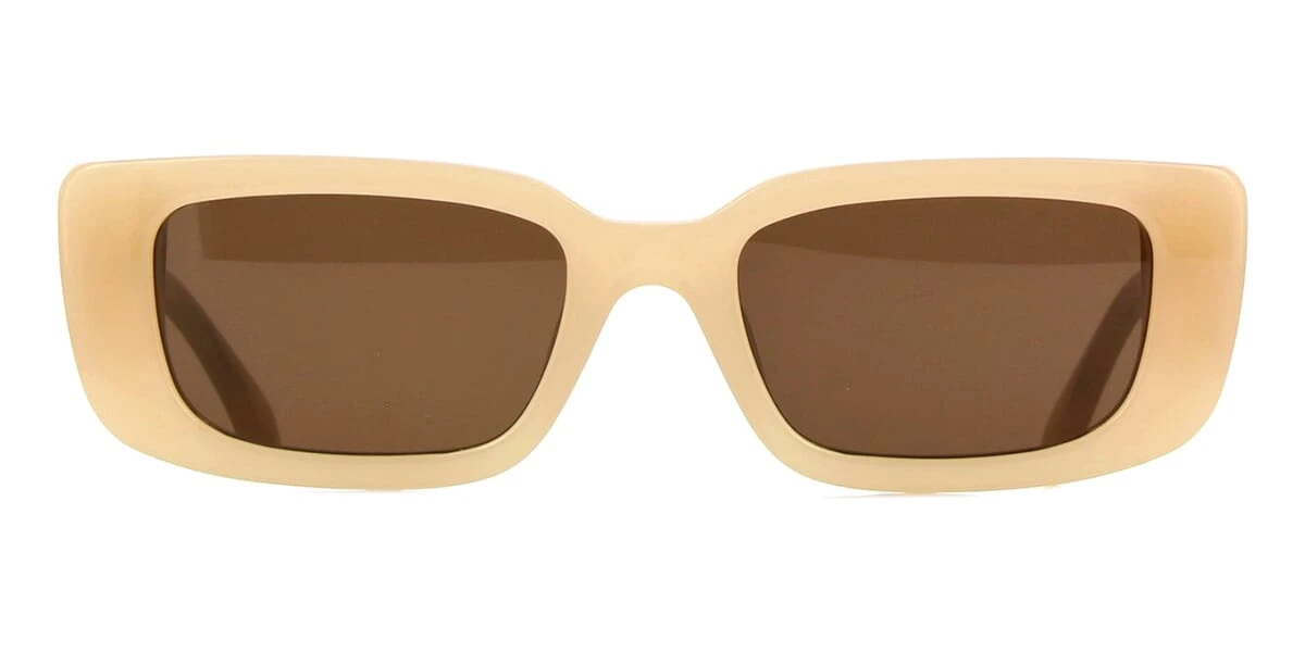 This square Palm Angels sunglass comes in a sand opal frame with brown lenses.