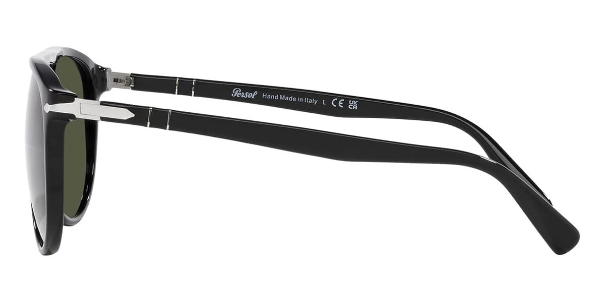 This aviator Persol sunglass comes in a black frame with green lenses.