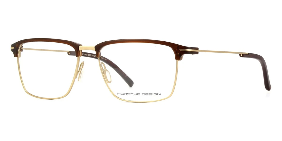 This square Porsche Design optical comes in a brown opal and mat lightt gold frame.