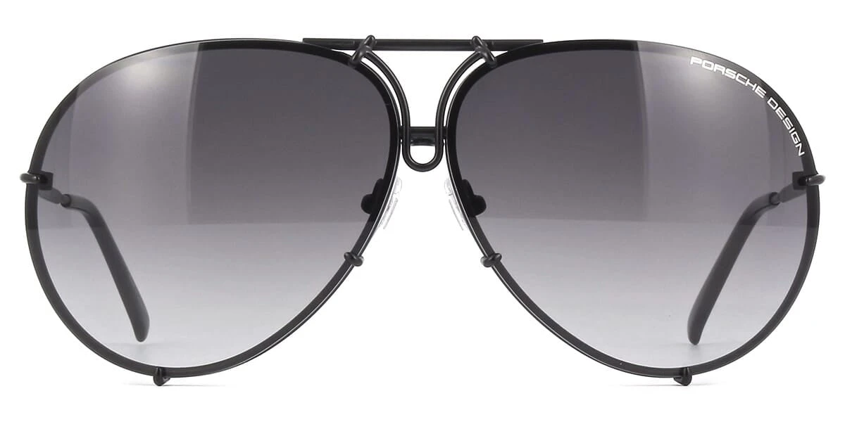 This aviator Porsche Design sunglass comes with grey gradient lenses.