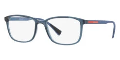 This rectangular Prada Linea Rossa optical comes in a transparent azure frame.