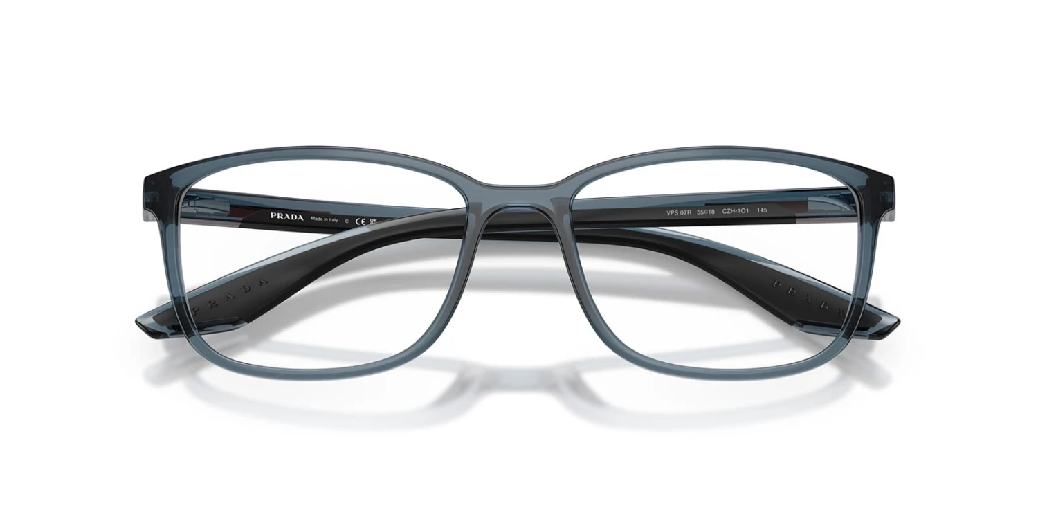 This rectangular Prada Linea Rossa optical comes in a azure crystal frame.