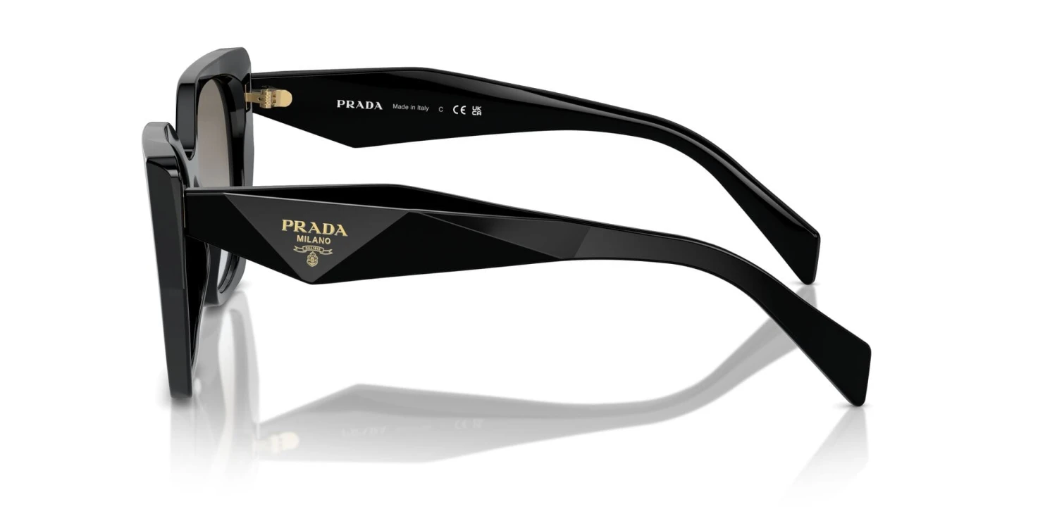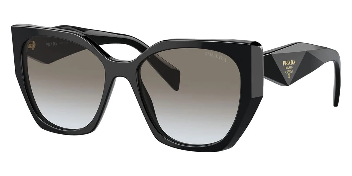 This cat eye Prada sunglass comes in a black frame with grey gradient lenses.
