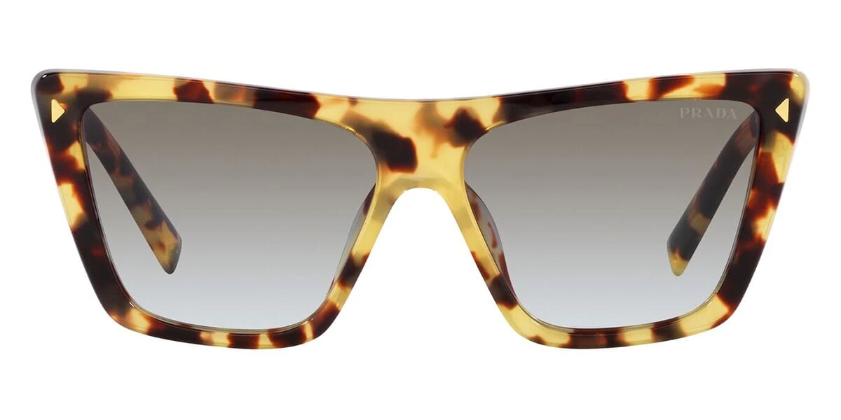 This butterfly Prada sunglass comes in a medium tortoise frame with grey gradient lenses.