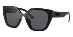 This rectangular Prada sunglass comes in a black frame with grey polarised lenses.